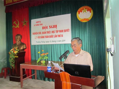 Thực hiện Nghị quyết của Huyện Ủy và sự chỉ đạo của Thường trực UBMT Tổ Quốc huyện Hiệp Hòa, sáng 15/9/2011, UBMT Tổ Quốc xã Thường Thắng đã phối hợp với Thường trực Đảng ủy xã tổ chức lớp nghiên cứu, quán triệt và thực hiện Nghị quyết Đại hội Đảng toàn quốc lần thứ XI cho cán bộ thôn, cán bộ đoàn thể là người ngoài Đảng. Đông đảo cán bộ được triệu tập đã có mặt. Bà Nguyễn Thị Dung, huyện ủy viên, phó Bí thư thường trực Đảng ủy đã trực tiếp giới thiệu nội dung Nghị quyết với lớp học. Ông Trần Chi, Bí thư Đảng ủy trực tiếp dự, theo dõi, chỉ đạo lớp học.