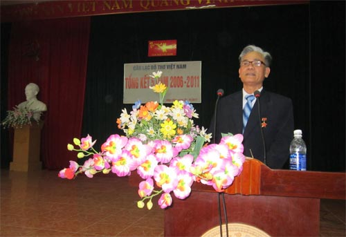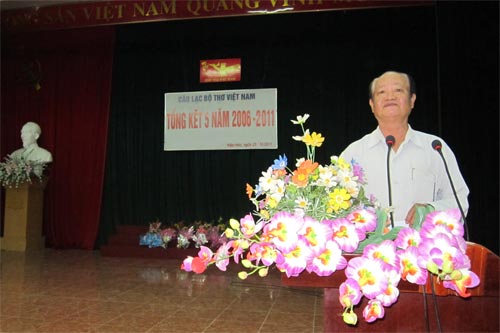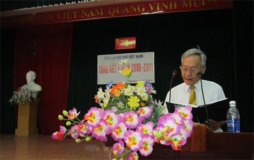 Ông Nguyễn Xuân Miễn báo cáo tổng hợp thơ 5 năm của CLB.