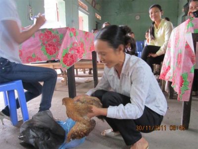 Kiểm tra thực hành tiêm vắc xin cho gà