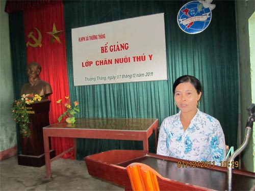 Chị Nguyễn Thị Gái, Chủ tịch Hội LHPN xã Thường Thắng báo cáo tổng kết lớp học, đã nêu: Sau một tháng học tập, với những giảng viên có kinh nghiệm của Trung tâm dạy nghề huyện Hiệp Hòa giảng dạy theo phương pháp “cầm tay chỉ việc”, học viên đã được trang bị những kiến thức về sản xuất hàng hóa; chọn giống trong chăn nuôi; phòng, chữa bệnh cho gia súc, gia cầm; kết hợp giữa chăn nuôi với trồng trọt; Tổ chức sản xuất quy mô lớn….