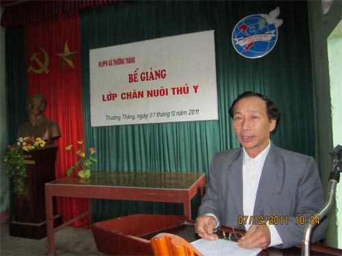 Chị Nguyễn Thị Liên, Phó Chủ tịch Hội LHPN Tỉnh và anh Đinh Xuân Hiệu, Trưởng phòng LĐTBXH huyện đã phát biểu động viên lớp học, mong tất cả học viên phát huy tốt kết qủa học tập, áp dụng vào thực tế sản xuất của gia đình để phát triển kinh tế, tiến tới xóa nghèo, vươn lên làm giầu, góp phần thực hiện tốt mục tiêu “dân giầu, nước mạnh…” mà Đảng và Nhà Nước đã đề ra.