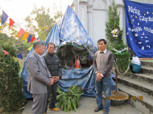 Đại diện Ban hành giáo kiểm tra công việc chuẩn bị đêm văn nghệ đón Giáng sinh. T