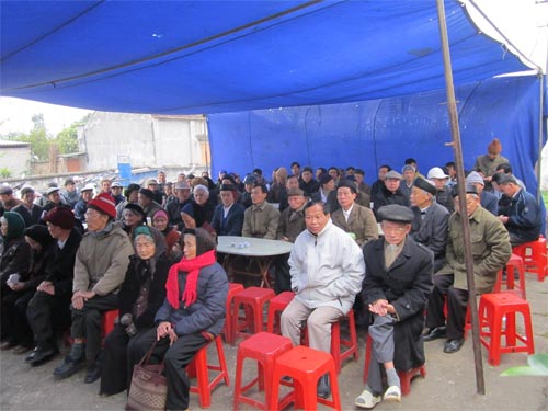 Cùng với lễ mừng thọ là lễ nhập tịch (kết nạp) “các cụ” tuổi 49 ra nhập Hội các cụ làng. Năm nay có 26 “cụ” tuổi 49 xin nhập tịch. Thủ tục cũng giản đơn. Người xin nhập tịch đăng ký tên, tuổi, ông Trường làng “dâng sớ” lên Thành Hoàng để được công nhận. Đến ngày lệ làng mùng 9 tháng 9, các cụ em mới nhập tịch làm nhiệm vụ phục vụ các cụ làng 2 năm. Cứ tuần tự lớp sau tiếp lớp trước, thành lệ hàng năm, bổ sung lực lượng cho Hội các cụ làng. Lệ không bắt buộc nhưng ai cũng tự giác tham gia nên đã trở thành một phong tục đẹp của làng.