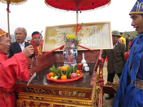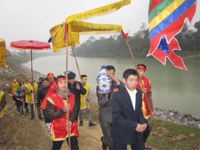 Bình nước được đặt trang trọng trên kiệu rước về đình, đặt ở hậu cung để thờ đến ngày lệ năm sau.