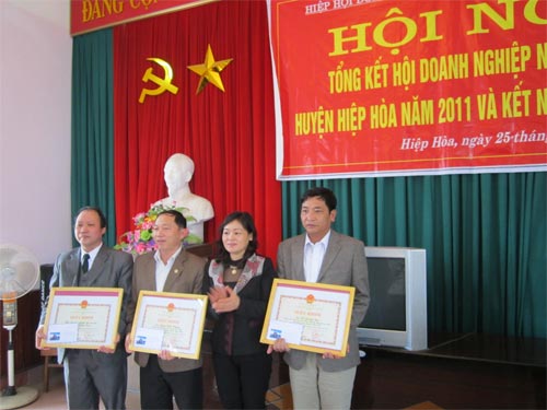 Báo cáo tổng kết hoạt động của Hội năm 2011 do ông Trương Văn Đơn, chủ tịch Hội trình bày đã nêu: Năm 2011, ảnh hưởng của sự biến động của nến kinh tế trong nước cũng như thế giơi, giá cả tăng liên tục, hoạt động của các doanh nghiệp gặp không ít những khó khăn. Một số doanh nghiệp có nguy cơ phá sản do thiếu thông tin, thiếu kinh nghiệm, thiếu vốn. Song được sự quan tâm trực tiếp của UBND huyện và Ban Chấp hành Hội DNNVV tỉnh Bắc Giang đã có những giải pháp tháo gỡ khó khăn cho các doanh nghiệp: Tổ chức các cuộc hội thảo, mở các lớp bồi dưỡng quản trị kinh doanh cho các Giám đốc công ty, HTX; nhờ đó các doanh nghiệp trong huyện đã đứng vững, vượt qua khó khăn từng bước vươn lên. Huyện Hiệp Hòa có trên 200 doanh nghiệp nhỏ và vừa đanh hoạt động. Tông doanh thu ước tính có trên 135 tỷ đồng. Lợi nhuận sau thuể là 2,8 tỷ, nộp ngân sách nhà nước hàng chục tỷ đồng; giải quyết việc làm cho gần một nghìn lao động tại địa phương.