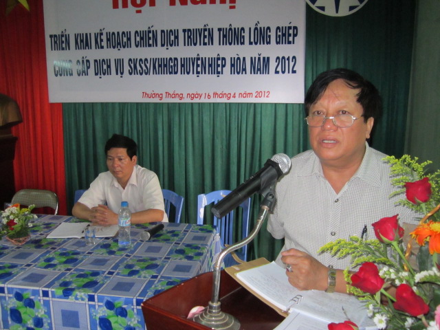 Ông Phạm Văn Quyền, Giám độc Trung tâm dân số kế hoạch hóa gia đình huyện Hiệp Hòa báo cáo kế hoạch chiến dịch của huyện.