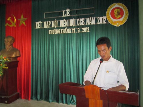 Hội viên mới Nguyễn Văn Phúc, phó Công an xã, người đã dũng cảm bắt bọn gây dối ở thôn Trong Làng bị chúng chém bị thương hồi đầu năm, thay mặt hội viên mới hứa hẹn quyết tâm giữ vững và phát huy tốt bản chất Bộ đội Cụ Hồ, hoàn thành tốt nhiệm vụ được giao.