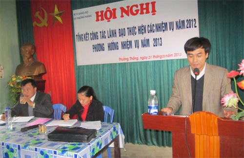 Phát biểu chỉ đạo hội nghị, đ/c Nguyễn Xuân Thảo, ủy viên Ban Thưởng vụ huyện ủy đã đánh giá cao những kết quả lãnh đạo của đảng bộ. Đ/c cũng chỉ rõ những mặt còn hạn chế và chỉ ra những nội dung đảng bộ cần tập trung lãnh đạo trong năm 2013. Trong đó, nội dung quan trọng là tiếp tục thực hiện Nghị quyết hội nghị Trung ương lần thứ 4 (khóa XI), khắc phục triệt để những khuyết điểm đã kiểm điệm. Đặc biệt là công tác giáo dục chính tri, tư tưởng cho đảng viên, duy trì sinh hoạt đảng, phát triển đảng viên mới.