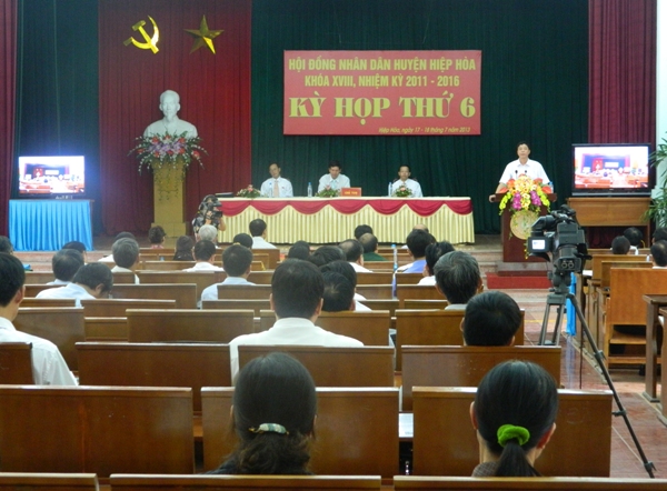 Sáng ngày 17/7, HĐND huyện Hiệp Hòa khóa 18, nhiệm kỳ 2011- 2016 đã long trọng khai mạc kỳ họp thứ 6, nhằm đánh giá tình hình phát triển KT-XH 6 tháng đầu năm 2013, đề ra phương hướng nhiệm vụ phát triển KT- XH 6 tháng cuối năm 2013. Đồng thời quyết định một số vấn đề quan trọng tại kỳ họp.