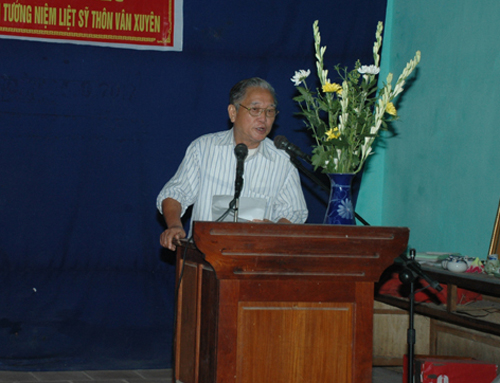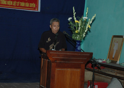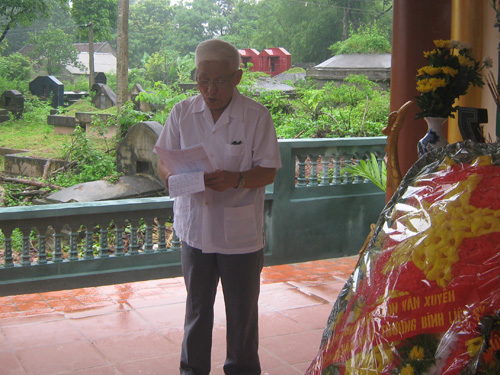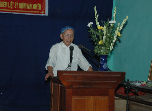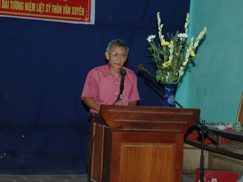 Trước khi làm lễ dâng hương, trong không khí thành kính, ông Nguyễn Thanh Quất- Nguyên ủy viên Trung ương Đảng- nguyên Bí thư Tỉnh ủy Hà Bắc là người con của quê hương đã thay mặt nhân dân làng Vân Xuyên kính mời hương hồn 24 liệt sĩ về yên nghỉ tại nhà bia.