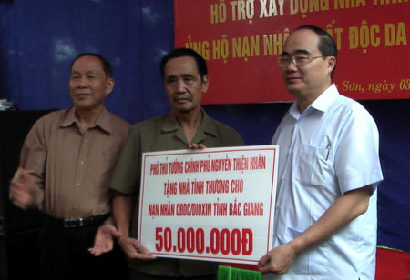 Nhân kỷ niệm 52 năm Ngày Vì nạn nhân chất độc da cam (CĐDC)/điôxin Việt Nam 10-8 (1961-2013), ngày 3-8, đồng chí Nguyễn Thiện Nhân, Uỷ viên Bộ Chính trị, Phó Thủ tướng Chính Phủ đã đến thăm, tặng quà một số nạn nhân CĐDC hoàn cảnh đặc biệt khó khăn huyện Hiệp Hoà, Tân Yên, Việt Yên và TP Bắc Giang (tỉnh Bắc Giang). Cùng đi có các đồng chí: Nguyễn Văn Linh, Phó Chủ tịch Thường trực UBND tỉnh; Nguyễn Văn Rinh, Chủ tịch T.Ư Hội Nạn nhân CĐDC/điôxin Việt Nam và lãnh đạo các huyện và thành phố.