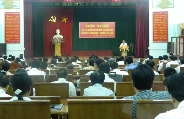 Trong 2 ngày 15, 16/8, Huyện ủy Hiệp Hòa tổ chức học tập, quán triệt và triển khai thực hiện các Nghị quyết, Kết luận của Hội nghị lần thứ 7 BCH Trung ương Đảng (khóa XI) cho đội ngũ cán bộ chủ chốt huyện và các xã, thị trấn.