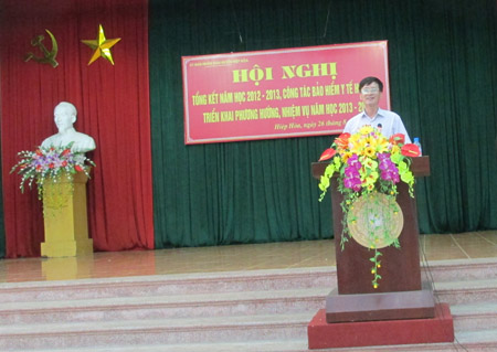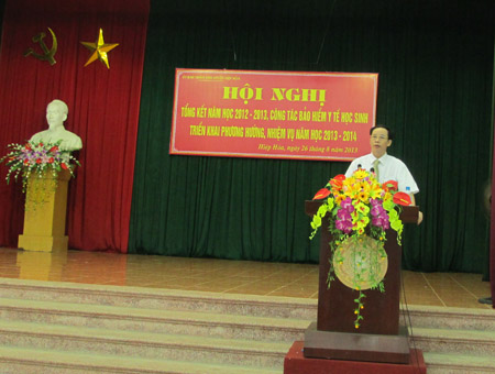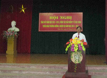 Ông Phạm Văn Nghị- Trưởng phòng giáo dục và đào tạo huyện trình bày báo cáo tổng kết năm học 2012-2013 và triển khai nhiệm vụ năm học 2013- 2014.