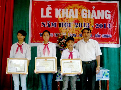 Thay mặt Huyện ủy, HĐND, UBND huyện, Đồng chí Bí thư Huyện ủy, Chủ tịch HĐND huyện đã đánh trống khai giảng năm học mới 2013 – 2014 và tặng bó hoa tươi thắm cùng nhiều phần quà cho thày và trò nhà trường.