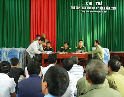 Ban CHQS huyện Hiệp Hòa vừa tổ chức chi trả trợ cấp 1 lần đợt 3 cho các đối tượng tham gia chiến tranh bảo vệ Tổ quốc, làm nhiệm vụ quốc tế ở Campuchia, giúp bạn Lào sau ngày 30/4/1975 đã phục viên, xuất ngũ, thôi việc theo Quyết định số 62 ngày 09/11/2011 của Thủ tướng Chính phủ.