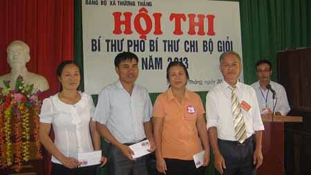 Sáng ngày 20/9. Đảng ủy xã Thường Thắng long trọng tổ chức thi Bí thư, Phó Bí thư Chi bộ giỏi năm 2013. Về dự và chỉ đạo hội thi có đồng chí Hoàng văn Tri- HUV- Phó Ban tổ chức Huyện ủy, các đồng chí lãnh đạo Đảng ủy, HĐND- UBND xã. Các đồng chí trong Ban giám khảo, Tổ thư ký, Tổ giúp việc và 28 đồng chí tham gia dự thi ở 17 Chi bộ trong toàn Đảng bộ.