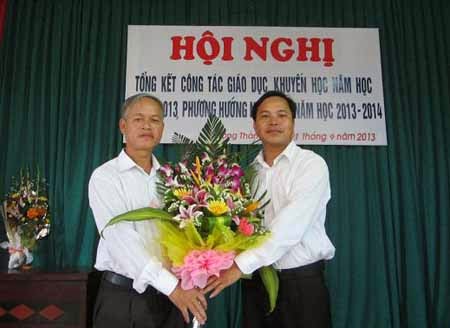 Đ/c Phạm Văn Nghị- Trưởng phòng GD&ĐT huyện tặng hoa chúc mừng Hội nghị.