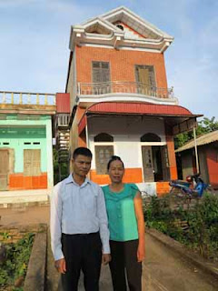 Vợ chồng anh Chuyên bên ngôi nhà của mình.
