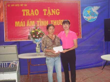 Chiều ngày 24/7/2013, Hội LHPN huyện Hiệp Hoà tiến hành trao nhà “Mái ấm tình thương” cho đối tượng phụ nữ nghèo, đó là chị Ngô Thị Dinh, thôn Hợp Vang, xã Bắc Lý. Chị Vang là phụ nữ đơn thân nuôi con nhỏ, mẹ con chị sống với vợ chồng người anh trai. Chị làm nghề nông, sức khoẻ cũng không tốt nên nhiều năm qua chị cũng chưa tích luỹ đủ tiền để xây nhà ra ở riêng. Thấu hiểu được hoàn của chị, Hội LHPN xã Bắc Lý báo cáo Hội LHPN huyện Hiệp Hoà và đảng uỷ, UBND xã Bắc Lý lập hồ sơ trình duyệt để xây nhà “MATT” cho chị. Ngôi nhà được xây dựng khang trang với sự phối hợp, giúp đỡ của các cấp uỷ đảng, chính quyền, MTTQ và các đoàn thể xã Bắc lý và gia đình chị, đã cùng chung tay giúp sức cả về tiền, hiện vật, ngày công lao động và cả những lời động viên khuyến khích chia sẻ với chị. Ngôi nhà hoàn thành với diện tích sử dụng 60m2, tổng giá trị công trình là 84.500.000đ.