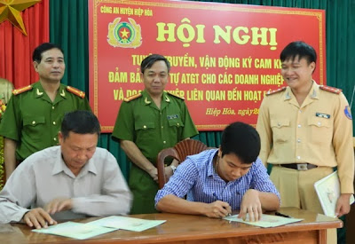 Tại hội nghị, các chủ doanh nghiệp đã được Công an huyện Hiệp Hòa quan triệt một số văn bản, chủ trương, giải pháp của Đảng, nhà nước trong đảm bảo TTATGT; Phổ biến một số chế tài xử phạt khi vi phạm Luật ATGT đường bộ liên quan đến hoạt động vận tải. Ngoài ra, các chủ doanh nghiệp đã trực tiếp ký cam kết đảm bảo trật tự ATGT đường bộ. Gồm 8 nội dung cam kết: Chấp hành nghiêm các quy định của pháp luật về điều kiện kinh doanh vận tải bằng ô tô; Không đưa xe cơ giởi, xe máy chuyên dung không đảm bảo tiêu chuẩn an toàn kỹ thuật và bảo vệ môi trường tham gia giao thông đường bộ; Không giao xe hoặc để xe cơ giới, xe máy chuyên dùng cho người không đủ điều kiện theo quy định của pháp luật điều khiển tham gia giao thông đường bộ; Không ép buộc lái xe chở hàng vượt quá trọng tải cho phép của xe, quá tải trọng cầu đường, chở quá số người quy định, đón trả khách không đúng nơi quy định, tranh giành khách…dưới mọi hình thức; Không điều khiển xe ô tô, máy kéo, xe máy chuyên dung trên đường khi đã uống rượu bia; Khi tham gia giao thông đi đúng phần đường, làn đường quy định, không chạy quá tốc độ, không vượt ẩu; Chấp hành nghiêm các quy định khác của pháp luật về quy tắc giao thông đường bộ và vận tải đường bộ; Thường xuyên quản lý, giáo dục, nhắc nhở cán bộ, công nhân, người lao động trong doanh nghiệp tự giác chấp hành các quy định của pháp luật khi tham gia giao thông.