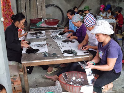 Thôn Hương Ninh hiện có gần 40 hộ làm nghề gia công quỳ bạc. Đây là mặt hàng tinh xảo được làm thủ công, dùng để dát lên các sản phẩm thủ công mỹ nghệ như hoành phi, câu đối, tượng phật và đồ gốm các loại. Đặc điểm của nghề này là vừa phong phú trong việc tìm nguồn hàng lại dễ làm, phù hợp với nhiều lứa tuổi lao động nên các xưởng gia công quỳ ở đây luôn thu hút nhiều lao động, đặc biệt là lao động phụ nữ và thanh niên, người khuyết tật. Trung bình mỗi xưởng thu hút và tạo việc làm cho khoảng 15 đến 20 lao động. Với mức thu nhập từ 2-3 triệu đồng/người/tháng. Ông Lê Quang Tạo – một chủ xưởng Đập quỳ ở xóm 2, thôn Hương Ninh cho biết: Gia đình tôi mở xưởng làm bạc quỳ đã được gần 8 năm, đây là một công việc thủ công nhẹ nhàng, có thể làm quanh năm, ở mọi thời tiết, mùa vụ, đặc thù của nghề này là không thể không thể dùng được các loại máy móc hiện đại để làm thay con người nên cũng được coi là bước đi thuận lợi trong phát triển kinh tế gia đình, đồng thời giúp bà con có thêm nghề phụ tăng thu nhập.