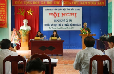 Bà Hoàng Thị Hoa, Phó trưởng Đoàn ĐBQH khu vực tỉnh Bắc Giang, Uỷ viên Thường trực Uỷ ban văn hoá, giáo dục, thanh thiếu niên và nhi đồng của Quốc hội và đại biểu quốc hội Hà Thị Lan, giáo viên Trường THPT Lục Nam vừa có cuộc gặp gỡ tiếp xúc cử tri 2 xã Đông Lỗ, Mai Trung (Hiệp Hòa) trước kỳ họp thứ 6, Quốc hội khóa XIII.
