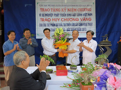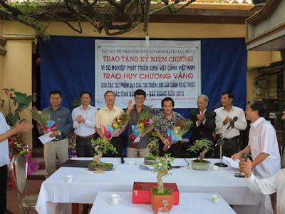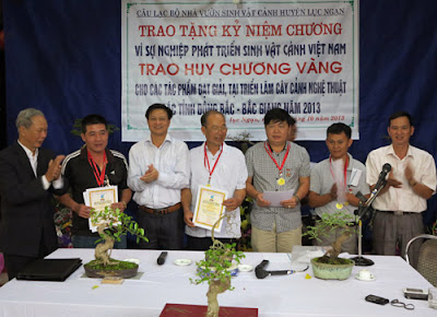 Các đại diện nhận huy chương vàng của cuộc triển lãm cây cảnh nghệ thuật tại Bắc Giang.