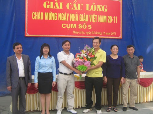 Ban tổ chức giải và các vận động viên đã vinh dự được đón đồng chí Phạm Văn Nghị- Trưởng phòng- Chủ tịch công đoàn ngành giáo dục tặng hoa, chúc mừng giải thành công.