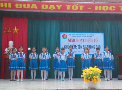 Thực hiện chương trình công tác Đội và phong trào thiếu nhi năm học 2013-2014 của Hội đồng Đội huyện, nhằm nâng cao chất lượng giờ chào cờ đầu tuần để giờ chào cờ đầu tuần trở thành những tiết học thú vị, góp phần quan trọng trong việc giúp các em rèn luyện nhân cách, từ những việc nhỏ như: Ham học, ham làm, siêng năng, cần kiệm… đến những việc lớn như hun đúc tinh thần dân tộc, lòng yêu nước ở mỗi con người Việt Nam, sáng 4/11/2013, Hội đồng Đội huyện Hiệp Hoà đã tổ chức điểm giờ chào cờ mẫu tại trường TH Ngọc sơn với chủ đề “Tôn sư trọng đạo”.