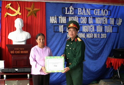 Căn nhà có tổng diện tích gần 30m¬¬2, kết cấu nhà cấp 4, trần nhựa, mái lợp tôn, nền lát gạch hoa, tổng kinh phí xây dựng là 90 triệu đồng, trong đó Bộ CHQS tỉnh hỗ trợ 60 triệu đồng, số tiền còn lại do gia đình, anh em trong dòng họ quyên góp và BCHQS xã, Hội phụ nữ ủng hộ 50 ngày công lao động. Ngoài số tiền hỗ trợ, Bộ chỉ huy QS tỉnh, UBND huyện, Ban CHQS huyện, UBND xã Hoàng Lương và các ban ngành đoàn thể ở xã, thôn còn trao tặng gia đình bà Lập quà như ti vi, chăn và các đồ dùng sinh hoạt. Đây là một trong những hoạt động thể hiện nghĩa cử cao đẹp và truyền thống “Uống nước nhớ nguồn” của dân tộc ta, tri ân với những người đã ngã xuống để bảo vệ nền độc lập – tự do cho tổ quốc hôm nay. Được biết, bà Lập là vợ liệt sỹ Nguyễn văn Tuấn, nhập ngũ năm 1977 và hy sinh năm 1982 tại biên giới phía Bắc. bà lập có một con gái đã đi lấy chồng, hiện bà ở một mình, thường xuyên đau ốm, thuộc gia đình có hoàn cảnh khó khăn của thôn Ninh Giang, xã Hoàng Lương.