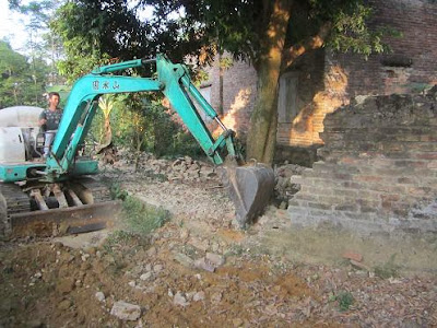 Nhân dân tự nguyện tháo dỡ và máy thi công.