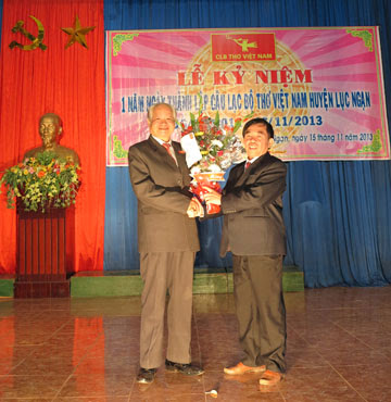 Ngày 15 tháng 11, tại nhà Văn hóa huyện Lục Ngạn, câu lạc bộ (CLB) thơ huyện Lục Ngạn tổ chức Lễ kỷ niệm một năm ngày thành lập. Về dự có các đại biểu: ông Hoàng In, Chủ tịch CLB thơ Việt Nam tỉnh Bắc Giang; ông Cao Văn Hoàn, Trưởng ban Tuyên Giáo huyện ủy; các ban ngành của huyện Lục Ngạn; CLB thơ các tỉnh bạn: CLB thơ Hương Sen, Hoa Sóng (Hải Phòng); CLB thơ Sông Cầu (Bắc Ninh); CLB thơ Đường Bắc Giang; CLB thơ các huyện trong tỉnh Bắc Giang và huyện Lục Ngạn, cùng nhiều văn nghệ sỹ các hội VHNT của Trung ương, của tỉnh là người địa phương.