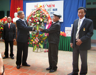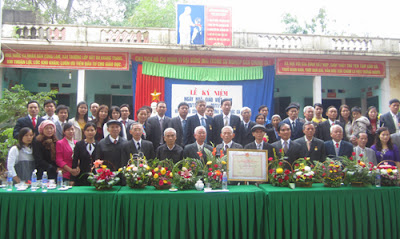 Đồng chí Nguyễn Văn Chính thay mặt Huyện ủy- HĐND, UBND huyện Hiệp Hòa trao Bằng chuẩn Quốc gia giai đoạn 2 cho nhà trường.