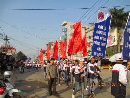 Thực hiện kế hoạch số 293/ KH- BCĐ ngày 14-11-2013 của Ban chỉ đạo phòng chống AISD và tệ nạn ma túy, mại dâm huyện Hiệp Hòa về triển khai tháng quốc gia Phòng chống AISD và phòng chống tệ nạn ma túy, mại dâm, sáng nay, tại Hội trường UBND xã Đức Thắng đã diễn ra Lễ mít tinh và diễu hành hưởng ứng Tháng quốc gia về phòng chống HIV/ AISD năm 2013. Tham dự Lễ mít tinh- diễu hành, có đại diện các BCĐ Phòng chống AISD và tệ nạn ma túy mại dâm cấp tỉnh, cấp huyện và cấp xã , các thầy thuốc, nhân viên trạm y tế xã , BGH, các thầy cô giáo và toàn bộ học sinh khối 9 trường THCS Đức Thắng.