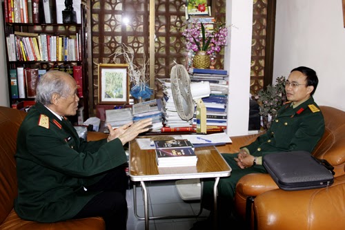 Căn phòng nhỏ cạnh cầu thang tầng hai, bộ ghế sa-lông đã sờn cũ, mọi thứ đều giản dị, nhưng ấm cúng. Giọng ông lúc sôi nổi, khỏe khoắn, khi chợt nghẹn lại. Có lúc tôi cũng lặng yên để dòng cảm xúc của ông lắng xuống mới dám hỏi tiếp. Ông là người bạn chiến đấu gần gũi, lại là em đồng hao trong gia đình, kỷ niệm với Đại tướng thì rất nhiều, nhưng trong một khoảng thời gian có hạn, ông chỉ kể cho tôi kỷ niệm về mấy câu chuyện mà ông coi là sâu sắc nhất…