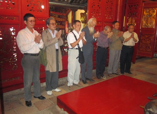 Chú thích ảnh dâng sách tại đền Ngọc Sơn, Hà Nội: Từ trái qua phải
