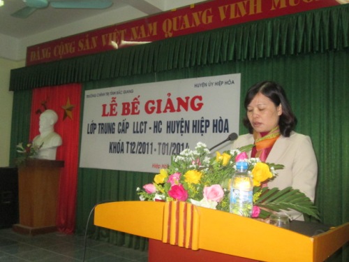 Sáng ngày 21/1/2014, Trung tâm Bồi dưỡng Chính trị huyện Hiệp Hòa đã tổ chức lễ bế giảng lớp trung cấp lý luận chính trị- hành chính khóa học 2011- 2014.