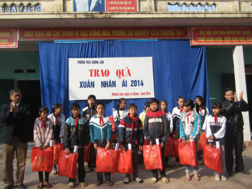 Thực hiện chương trình công tác của Liên Đội, Buổi sáng ngày 24-1-2014 tại Trường THCS Hương Lâm đã diễn ra lễ trao quà “Xuân thân ái – năm 2014 ”. Nguồn kinh phí được Liên Đội huy động từ tấm lòng thơm thảo của các thầy cô, các em học sinh trong nhà trường với tổng số tiền là 3.500.000đ. Tại buổi lễ trao quà Xuân thân ái năm 2014, Liên Đội Trường THCS Hương Lâm đã trao 35 xuất quà tết cho các học sinh có hoàn cảnh khó khăn vượt qua số phận để vươn lên trong học tập. Đây là việc ý nghĩa mà Liên Đội thường xuyên tổ chức nhằm khơi dậy tinh thần tương thân tương ái , lá lành đùm lá rách của đông đảo các thầy cô và các em học sinh mỗi độ tết đến xuân về.
