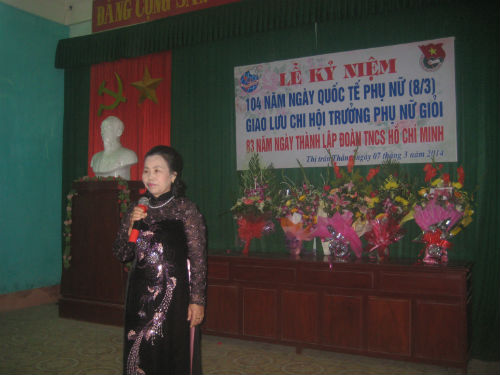 Sau chương trình văn nghệ chào mừng, đại diện các cơ quan ban ngành địa phương đã tặng hoa chúc mừng chị em phụ nữ nhân ngày 8-3. Các đồng chí chủ tịch Hội LHPN và bí thư Đoàn TNCS HCM Thị trấn Thắng đã đọc diễn văn kỷ niệm. Đồng thời, đây cũng là dịp để các chị chi hội trưởng phụ nữ giỏi chia sẻ những kinh nghiệm hay, những bài học quý trong công tác hội của mình.
