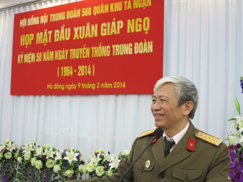 Đại tá – nghệ sỹ ưu tú Lưu Ba – Trưởng ban liên lạc CCB Đoàn 568 phát biểu ôn lại truyền thống Trung đoàn.