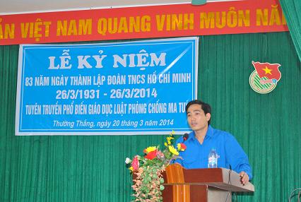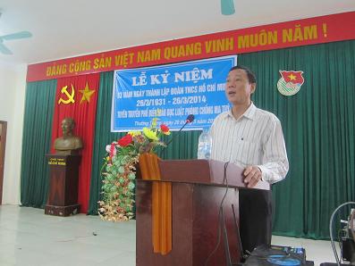 Sau phần nghi lễ mít tinh kỷ niệm 83 năm ngày thành lập Đoàn TNCS Hồ Chí Minh (26/03/1931 – 26/03/2014), đ.c Nguyễn Văn Năm, Chủ tịch UBND xã đã tuyên truyền phổ biến giáo dục pháp luật cho đoàn viên thanh niên như chúng ta đã biết trong cuộc sống xã hội có nhiêu cám dỗ mà dẫn đến nhiều gia đình phải tan nat. nó đem lại gánh nặng cho cả cộng đồng xã hội trong đó phải kể đến sự cam dỗ của ma túy ảnh hưởng nặng nề nhất là giới trẻ do sự thiếu hiểu biết về ma túy…