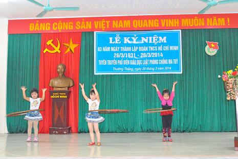 Sáng ngày 20 tháng 03 năm 2014 được sự đồng ý của Thường trực Đảng ủy, Ban Thường vụ Đoàn xã Thường Thắng tổ chức Chương trình tuyên truyền phổ biến luật phòng chống ma tuý và Lễ kỷ niệm 83 năm ngày thành lập Đoàn TNCS Hồ Chí Minh (26/03/1931 – 26/03/2014) về dự lễ kỷ niêm năm này phía lãnh đạo huyện đoàn có đ/c Trần Văn Thìn- UVBTV huyện đoàn Hiệp Hòa, lãnh đạo xã có các đ/c lãnh đạo Đảng ủy- HĐND- UBND- MTTQ và đ/c trưởng các ban ngành đoàn thể ở xã; cán bạn sinh viên trường cao đăng Ngô Gia Tự Bắc Giang về kiến tập; ở thôn có các đ/c là bí thư chi đoàn cùng đông đảo các bạn đoàn viên trong toàn xã.