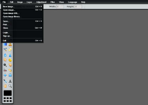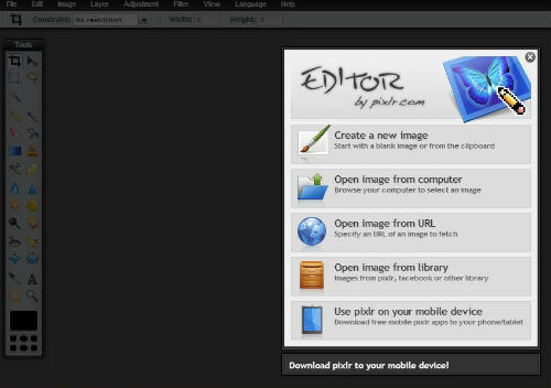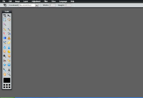 1- Các bạn vào trang http://pixlr.com/editor/, được giao diện như hình dưới đây: