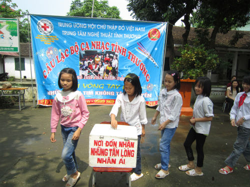 Nhân dịp này, thày và trò trường Tiểu học Mai Trung số 1 đã quyên góp ủng hộ Trung tâm nghệ thuật tình thương hơn 1 triệu đồng.