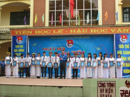 Nhân dịp này, Huyện đoàn Hiệp Hòa trao học bổng “Thắp sáng ước mơ” cho 18 học sinh tiêu biểu của Trường THPT Hiệp Hòa số 1, mỗi suất 200 nghìn đồng.