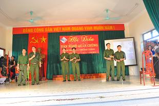 – Thưa bà con nhân dân trong thôn, thực hiện kế hoạch của UBND xã về việc tổ chức Hội diễn văn nghệ quần chúng lần thứ II, bà con nhân dân trong thôn đã nhiệt tình ủng hộ bằng cả tinh thần và vật chất. Để chuẩn bị tốt nhất cho ngày mai đội văn nghệ thôn ta biểu diễn, tối hôm nay, tại nhà văn hoá thôn sẽ tổ chức diễn thử mang tính chất báo cáo. Vậy kính mời bà con ta bớt chút thời gian ra nhà văn hoá để cổ vũ, động viên cho đội nhà…