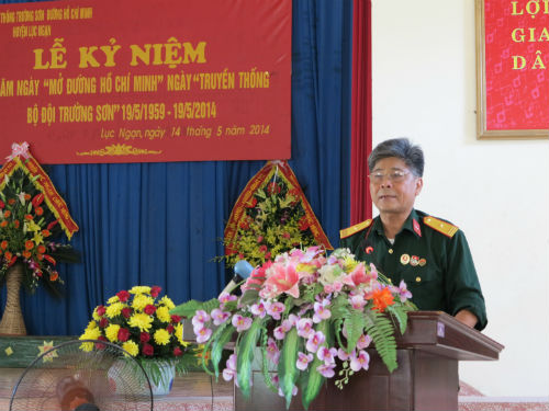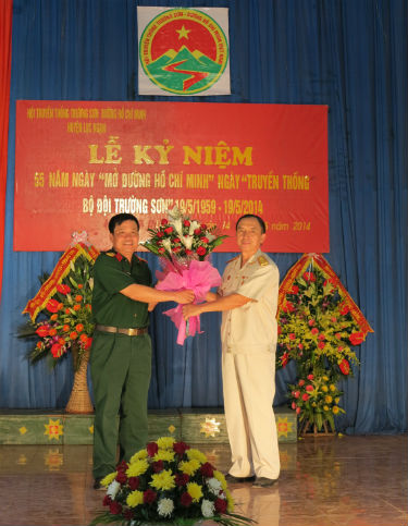 Trong không khí cả nước tưng bừng chào mừng các chiến thắng vĩ đại của dân tộc và kỷ niệm 124 năm ngày sinh Chủ tịch Hồ Chí Minh, cũng là ngày kỷ niệm 55 năm “Mở đường Hồ Chí Minh” – Ngày “Truyền thống bộ đội Trường Sơn”; Hội Truyền thống bộ đội Trường Sơn – Đường Hồ Chí Minh huyện Lục Ngạn tổ chức Lễ kỷ niệm trọng thể Ngày Truyền thống tại nhà Văn hoá huyện Lục Ngạn. Về dự có các đại biểu của Hội Truyền thống đường Hồ Chí Minh tỉnh Bắc Giang, lãnh đạo huyện uỷ, UBND và các cơ quan, ban ngành, đoàn thể của huyện cùng hơn 200 hội viên hội Truyền thống bộ đội Trường Sơn trong huyện.