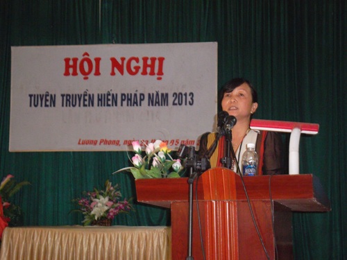 Để Hiến pháp 2013 sớm đi vào đời sống xã hội đảm bảo hiệu quả, chặt chẽ, nghiêm túc, sáng 23/5/2014, Phòng Tư Pháp huyện Hiệp Hòa phối hợp với UBND xã Lương Phong tổ chức hội nghị triển khai tuyên truyền Hiến pháp năm 2013 cho toàn Đảng viên trong Đảng bộ xã.