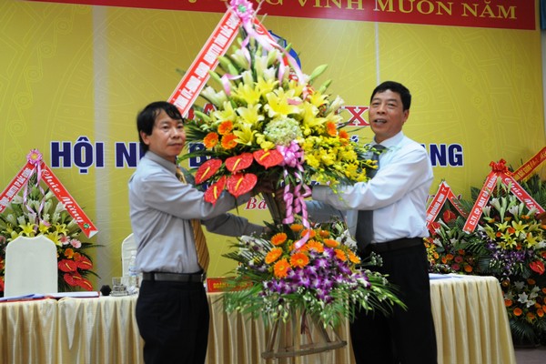 Chủ tịch UBND tỉnh Bùi Văn Hải tặng hoa Đại hội.