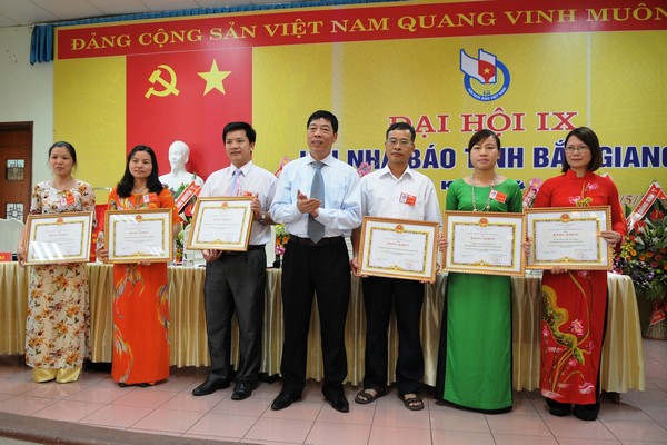 Thay mặt Hội Nhà báo Việt Nam, UBND tỉnh, Hội Nhà báo Bắc Giang, các đồng chí Hà Minh Huệ, Bùi Hải, Nguyễn Thế Dũng đã trao Bằng khen cho 1 tập thể và 3 cá nhân đã có thành tích xuất sắc trong hoạt động nghiệp vụ và xây dựng công tác hội; Bằng khen cho 3 tập thể và 3 cá nhân có thành tích xuất sắc trong công tác hội giai đoạn 2009-2014; Giấy khen cho 1 tập thể và 12 cá nhân có thành tích trong hoạt động công tác hội.